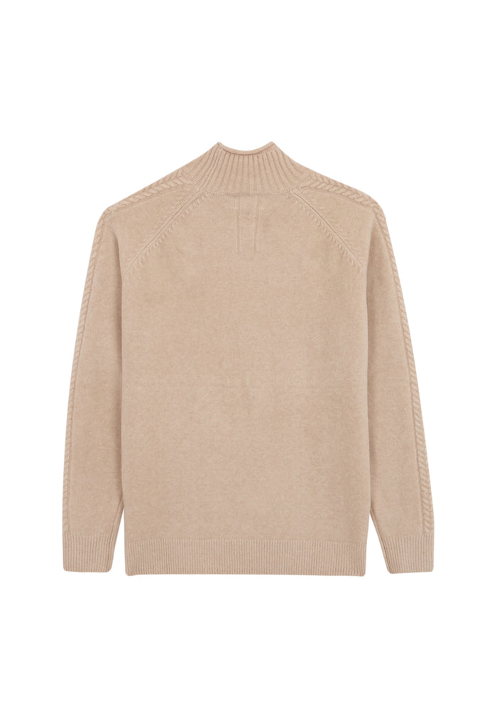 This sweater is made in yarn mix with super soft handfeel and comfortable fit. Designed for a regular fit, it has raglan sleeves, mock neck with a small role edge, and ribs at hem, cuff and neckline.