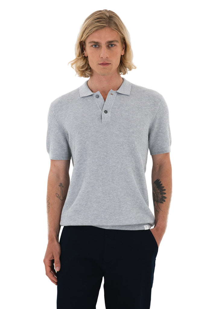 This knitted polo is made from cotton yarn. Designed for a regular fit, it features a button placket, ribbed sleeve and bottom hem.