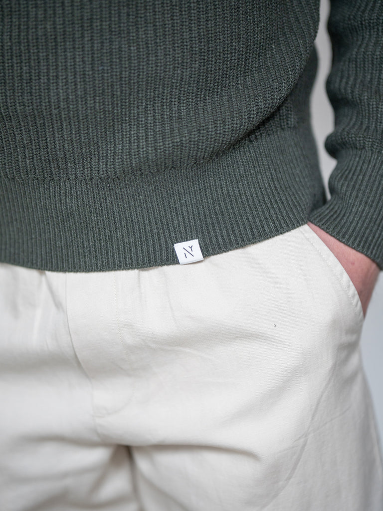 - Crew neck with neck trim in double layer